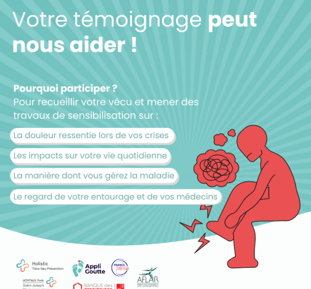 Votre participation est précieuse : elle contribuera à mieux faire connaître la réalité de la goutte et à renforcer les actions en faveur des patients.